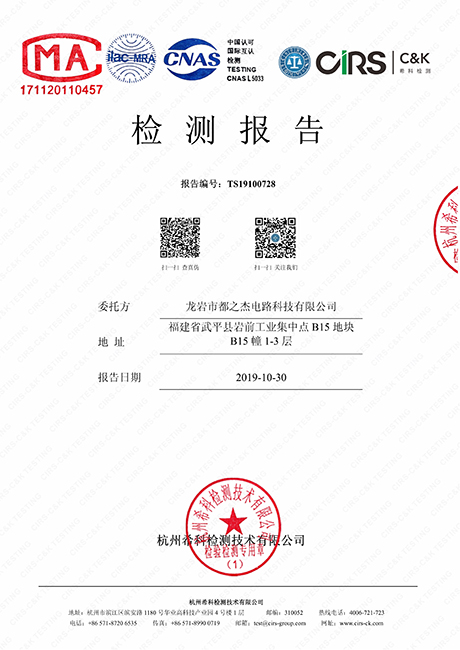 工廠搭建了ISO-9001、T/S16949、ISO14001的管理體系并通過認證,產(chǎn)品符合CQC、UL、IPC、RoHS等